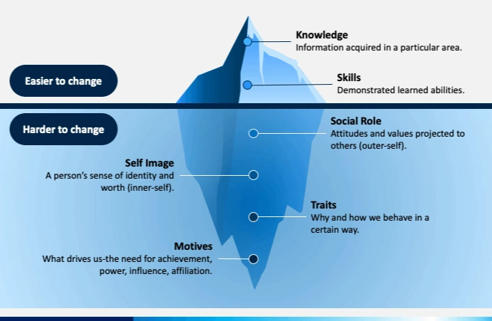 이러한 특성을 보여주는 것이 아래의 역량 빙산 모델이다.
