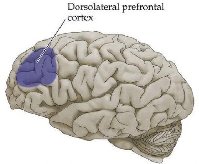 왼쪽: 배외측 전전두피질(DLPFC) / 오른쪽: 배측 전대상피질(dACC)의 위치와 구조.
