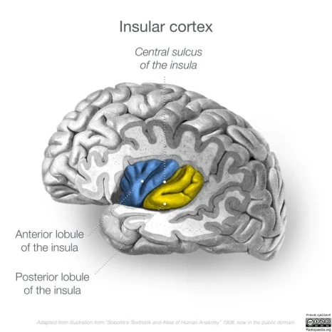 왼쪽: 측두극(temporal pole) / 오른쪽: 섬엽(insula)의 위치와 구조/