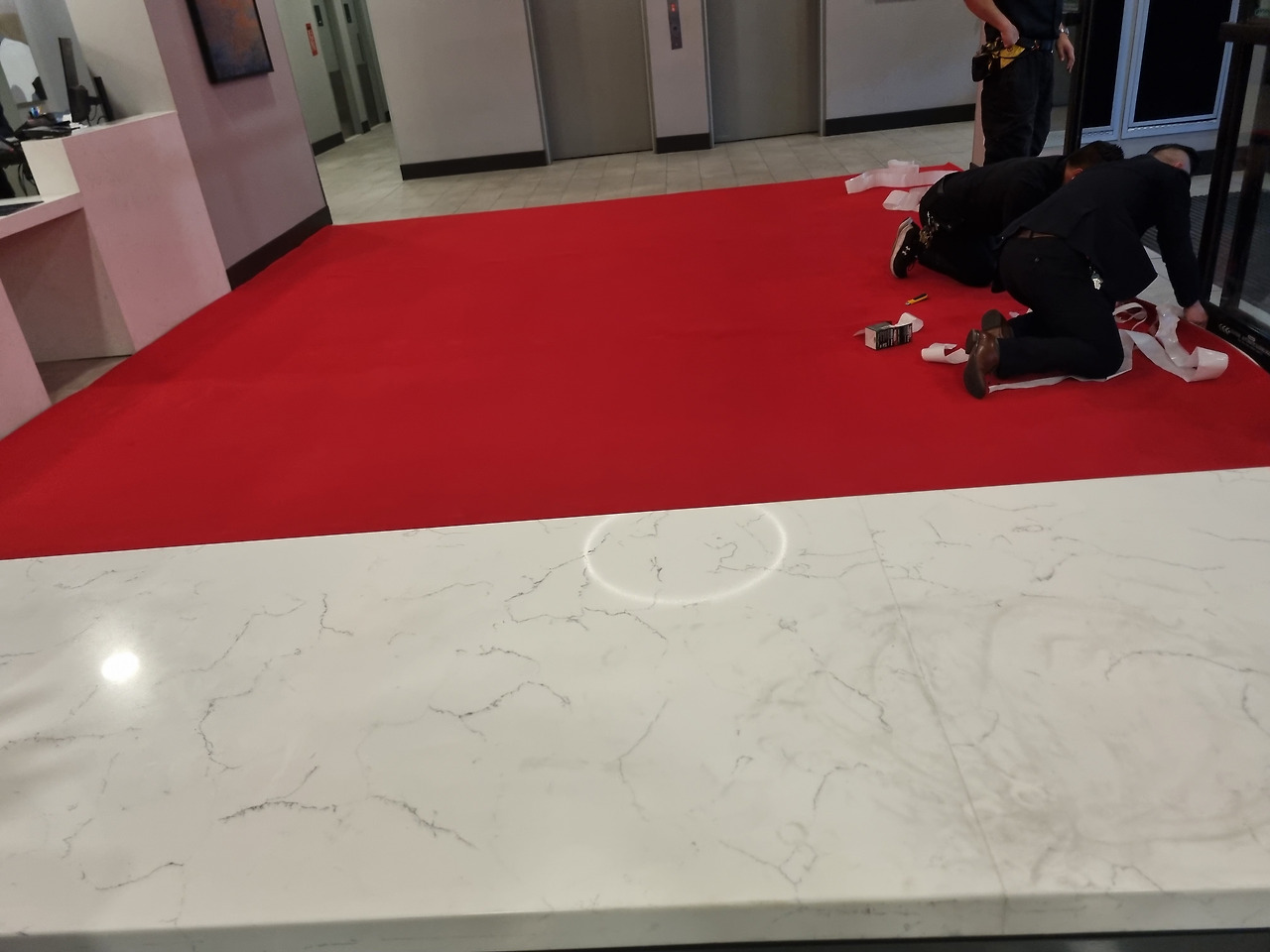 오늘은 그레이 컵 전통 행사의 일부인, 말이 직접 호텔로 와 체크인을 하는 날이었다. 이름하야, 홀스 체크인 (Horse Check in). 말이 오기 전 손님들이 길 건너에 있는 아트 갤러리로 몰려간 틈을 타, 호텔은 로비에 레드카펫을 깔기 시작했다.