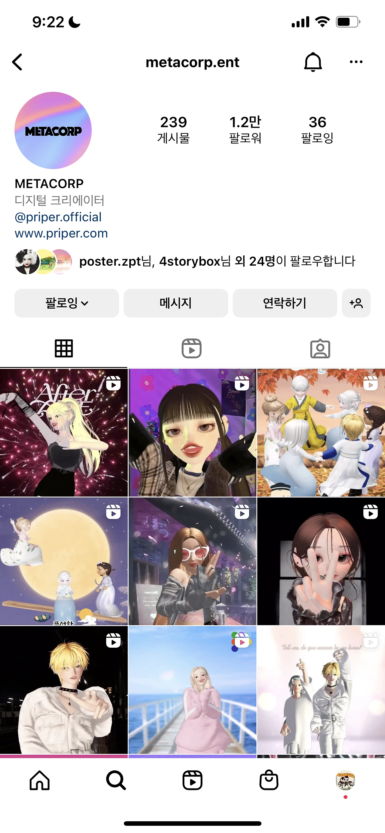 가족이 함께 다양한 계정(현재 20여개) 만들어서 마음껏 컨텐츠를 만들어보고 그 중 하나가 떡상이 와서 팔로우가 7만명이 넘게 되고(제페토계정아이디 : metacorp) 인스타그램 계정(아이디 : metacorp.ent)이 빠르게 1만명이 넘어가는 경험을 함께 해볼 수 있다는게 얼마나 짜릿한지 모릅니다.