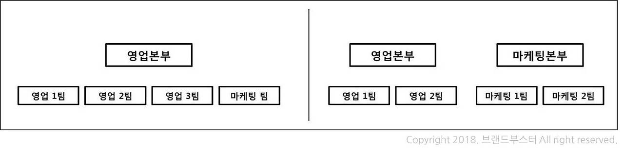 여담이지만 아직까지도 영업과 마케팅은 비슷한 개념으로 인식되고 있다. 기업의 조직구조는 기업이 해당 조직을 어떻게 인식하고 있는지를 보여준다. 마케팅팀이 영업본부에 속해있는 경우와 아닌 경우를 예로 들 수 있다. 마케팅 팀이 영업 본부에 속해 있으면 아무래도 영업 활동을 지원하는 스태프 역할을 맡게 된다. 제품 카탈로그를 만든다거나 홍보영상을 만들어서 영업사원들이 쓸 수 있는 무기를 만들어주는 일이다. 주로 프랜차이즈 기업에서 이런 모습이 많이 보이는데, 초반에 가맹점을 늘리기 위해 뛰어다니는 영업의 힘은 그야말로 막강하다. 보험이나 제약에서도 영업은 마케팅보다 중요하다.