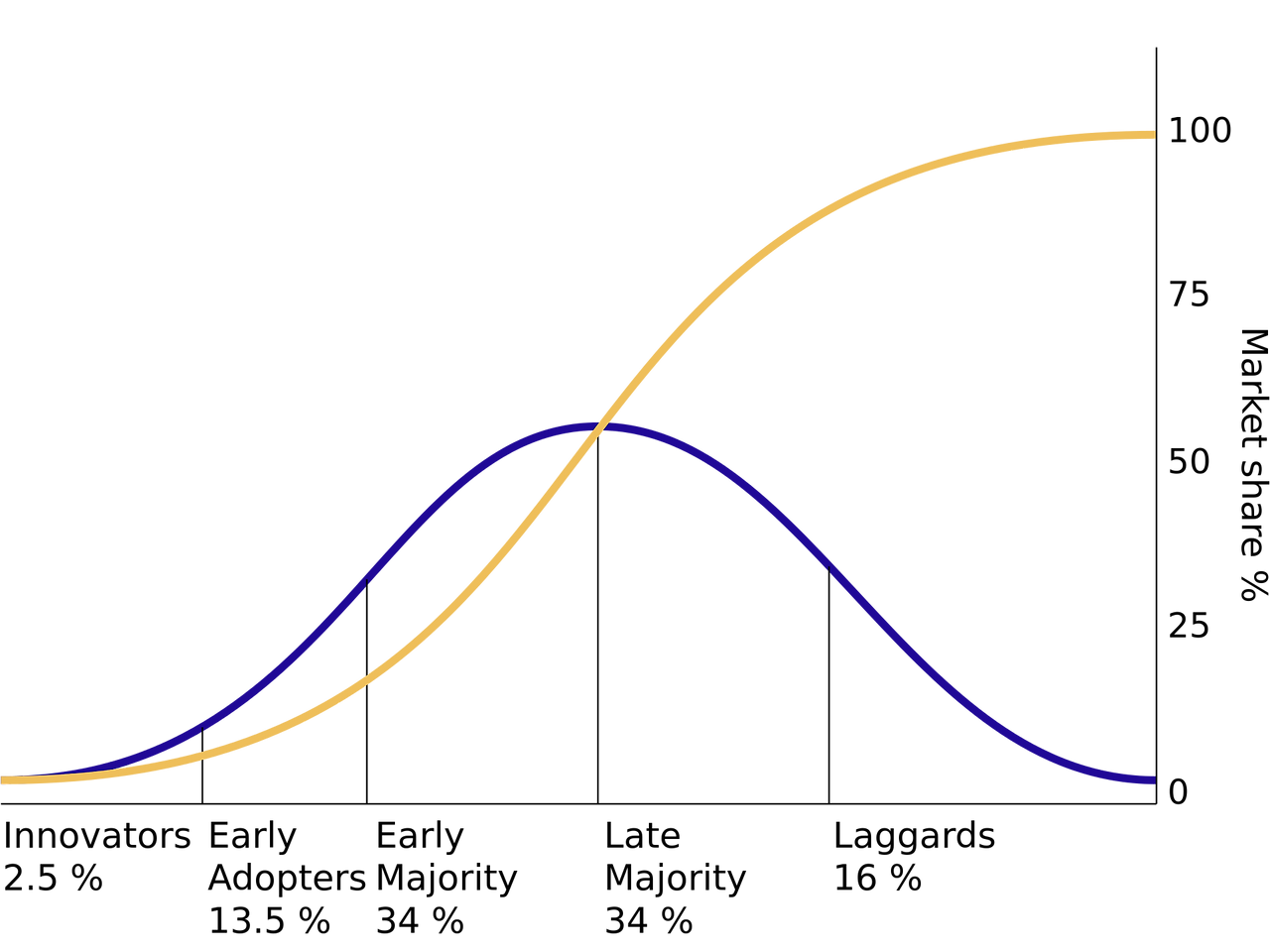 혁신은 답이 없다. 혁신의 성공과 실패는 결과로 따지는 경향이 짙기에 과정에서 확인할 수 있는 방법이 없다. 그렇다고 해서 손 놓고 있을 수는 없는 노릇 아닌가? 이런 답답한 상황에서 혁신수용모델은 일종의 나침반이 된다. 우리 기업이 혁신을 일으키고 있다면 어디까지 왔는가? 혹은 어떤 성향의 고객을 지향해야 하는지 추론할 수 있게 해 주기 때문이다.