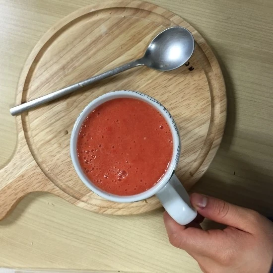 해서 저는 회식을 하거나 술을 마시고 난 뒤에는 꼭 토마토 주스를 먹습니다. 시원하게 마시면, 정신이 번쩍 드는 느낌이랄까요? 토마토 주스만큼 좋은 숙취해소 음식은 아직 찾지 못한 것 같아요. 집에서 만들어 먹지 못하면, 근처의 과일주스에서 토마토 주스를 사먹곤 합니다. (참, 이 때 시럽은 빼 달라고 말합니다.)