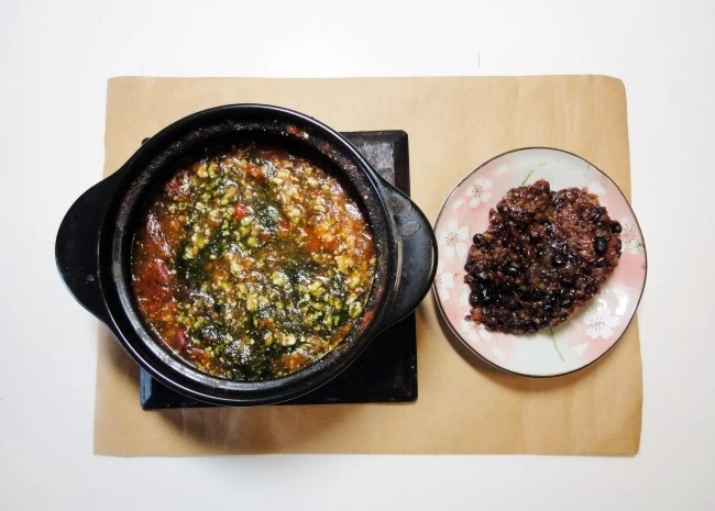 (보글보글 끓을 때 두부와 콩을 넣어주어도 좋습니다.)