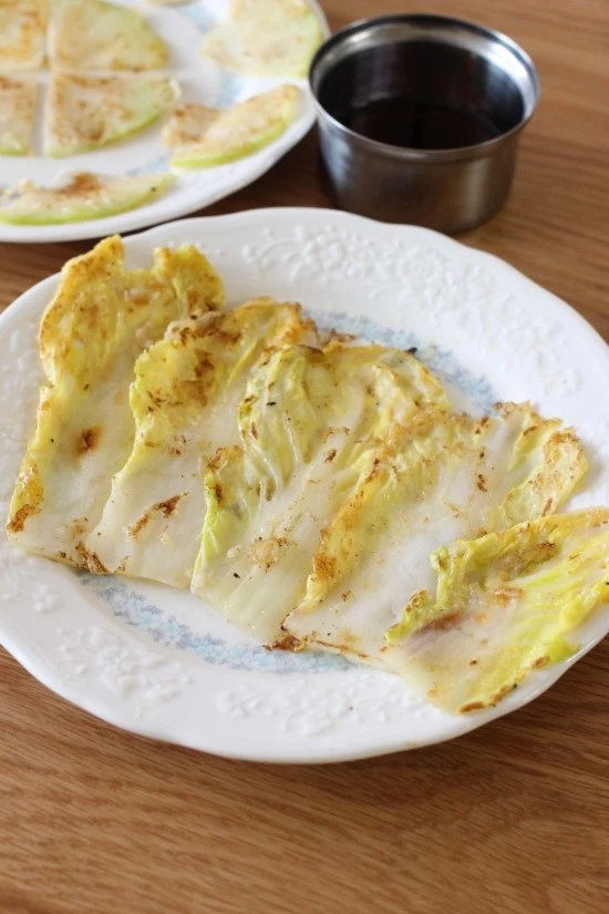 - 배추속에 밀가루 반죽을 살짝 묻힌 뒤, 센 불에 부쳐주시면 됩니다.