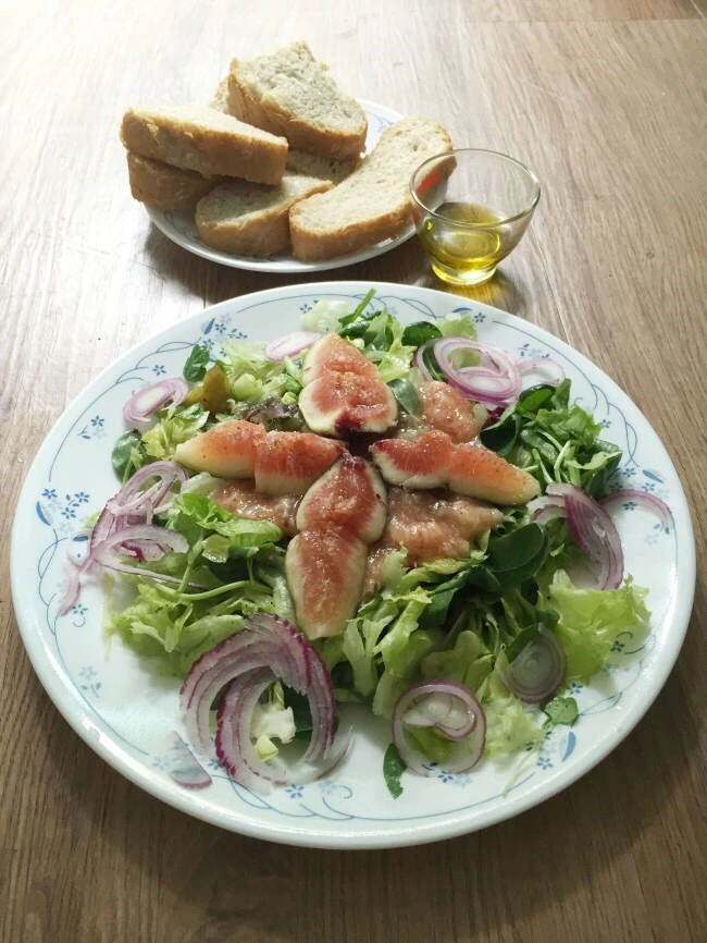 5. 올리브유를 살짝 찍어, 무화과 샐러드를 올려 드셔주시면 끝!