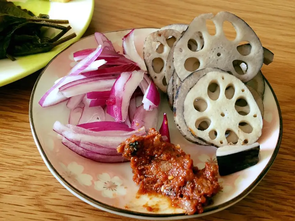 반찬이 너무 싱겁다 느껴질 때는 젓가락에 된장을 콕 찍어서 먹으면 간이 맞게 먹을 수 있습니다.