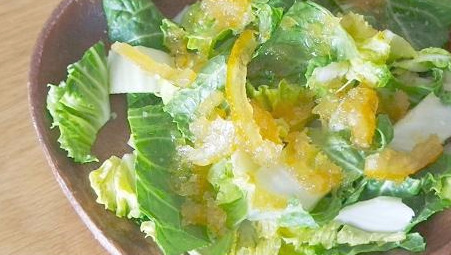 싱싱한 봄동은 썬 직후, 소금을 뿌려 5분 정도 둔다.