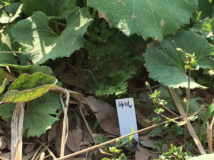 머위 아래의 챠빌.