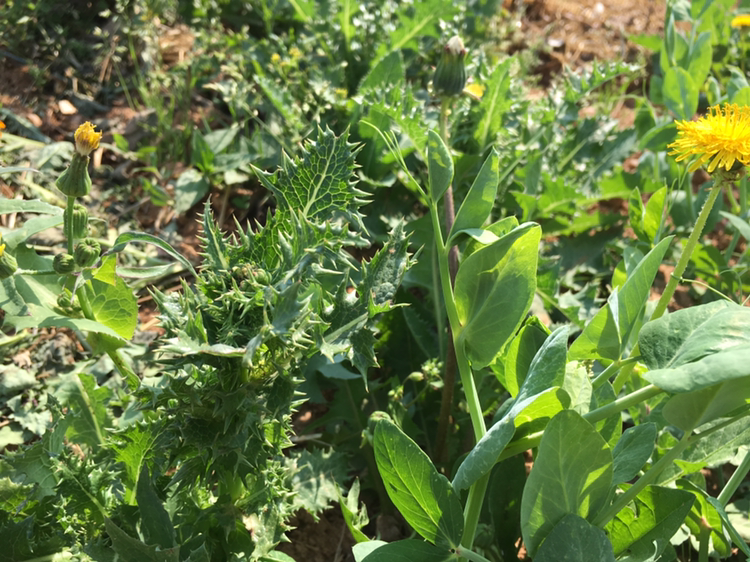 옆에 난 엉겅퀴를 붙잡으려한다.