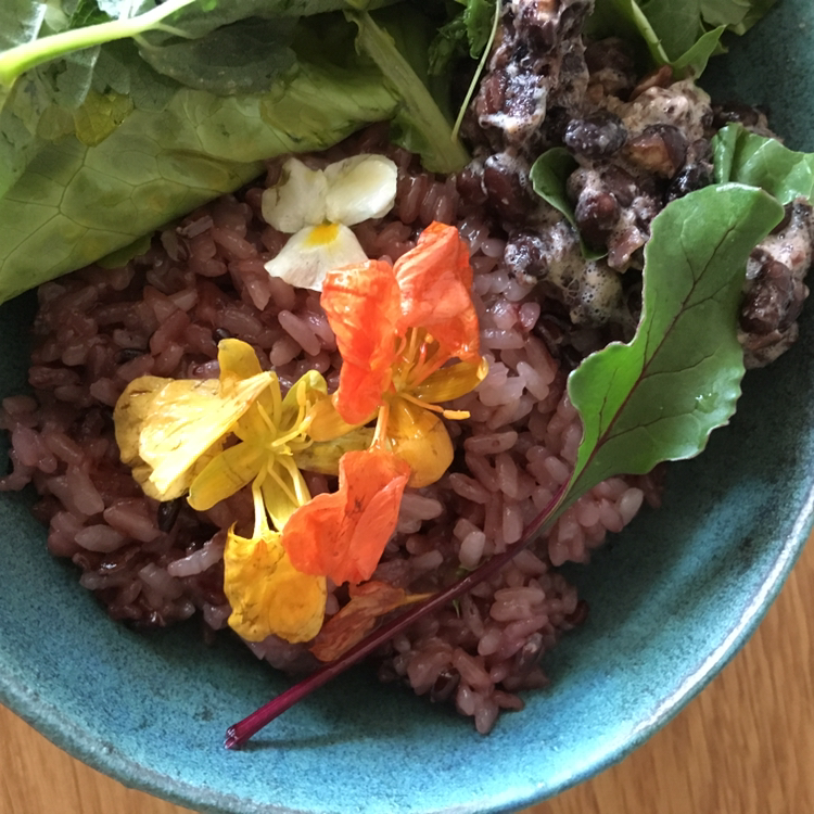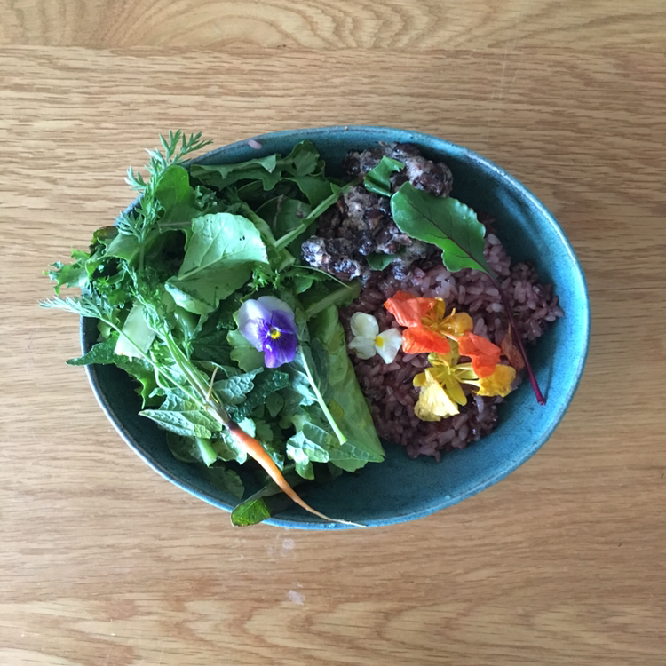 어제는 채소를 가득 따서 꽃밥을 먹었다.
