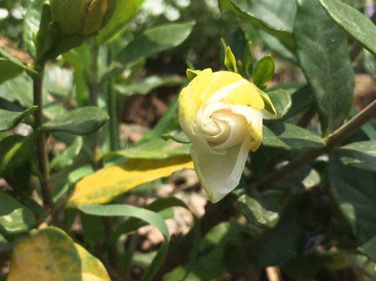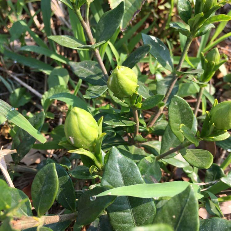치자는 꽃봉오리가 나서 바로 꽃을 피우지 않았다.