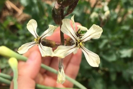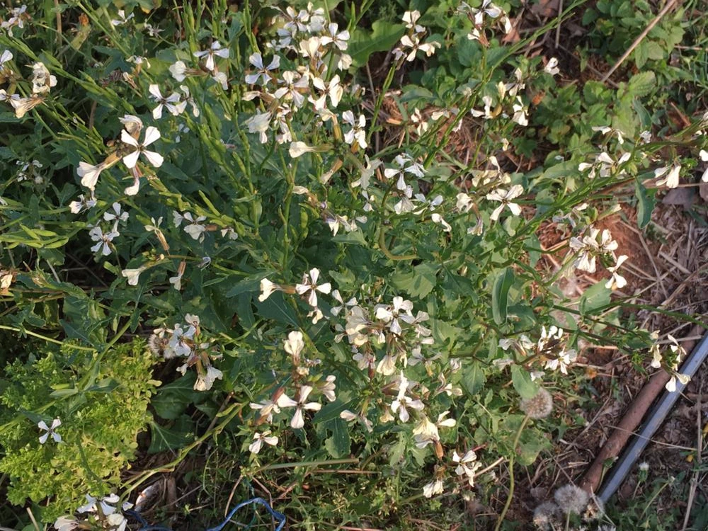이렇게까지 심하게 자랄 줄은 몰랐던 루꼴라 꽃.