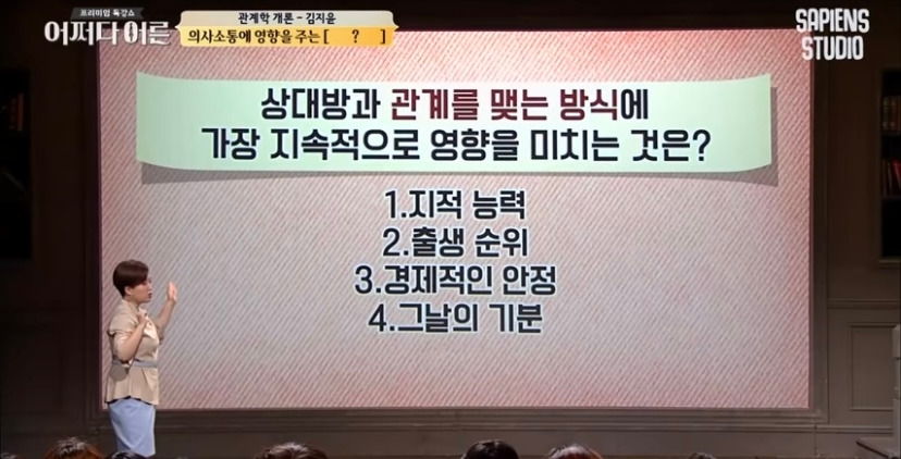 <어쩌다 어른> 김지윤 소장 편에 따르면, 많은 사람들이 "4번 그날의 기분"을 택했지만 놀랍게도 "2번 출생순위"가 답이다. 나는 외동이라, 그 보편적 특징에 많이 공감했다.
