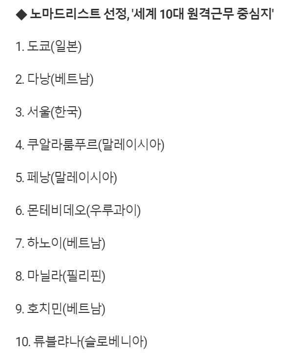 외국인 원격근무자들을 위한 비자를 발급하고 있다고 하는데, 베트남도 이 비자를 만드는 순간 1위로 등극하지 않을까 싶다