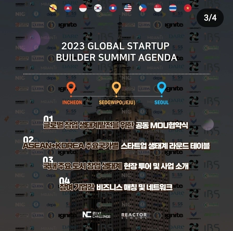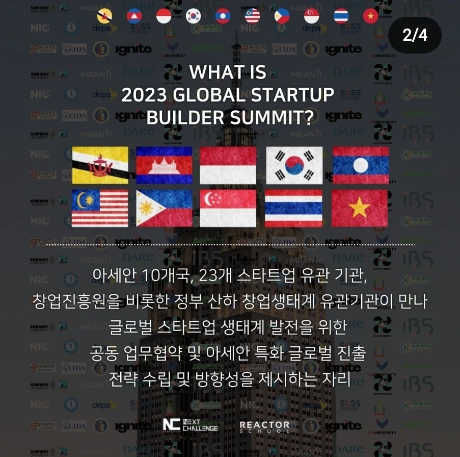 I want to tell you about the need for Korean startups to advance into ASEAN nations. According to a news report, the government declared the end of Corona crisis. Since the outbreak of Corona, we've seen a sharp increase in the number of those who use on-line and digital devices to date. On the other hand, polarization has been going from bad to worse among people. To deal with that, companies in our country should increase their revenues. However, their efforts to do that have their limits in Korea. So they have to advance into overseas markets. We have to become interested in ASEAN nations' among them. Recently, we the Foundation held 'The 2023 Global Startup Builder Summit' in Korea, which lasted from May 8th to 12th. Representatives from ASEAN countries including Singapore, Thailand, Vietnam, Indonesia, Malaysia, Laos, Brunei and Philippines participated in this Summit. They are public servants who are all working in each country's institutes supporting startups. This time, I came to have a lot of friends whose countries' cultures and living conditions are different from those of our country. Besides, this summit gave us an golden opportunity to establish a lot of footholds in up to nine countries. NCF wants to establish a branch in each of them. We'll focus on creating the No.1 globl accelerator in the world. In conclusion, countries all over world are becoming connected with one another excessively in the wake of the Crisis, paving the way for the era of AI. Our foundation is targeting 'go global'!