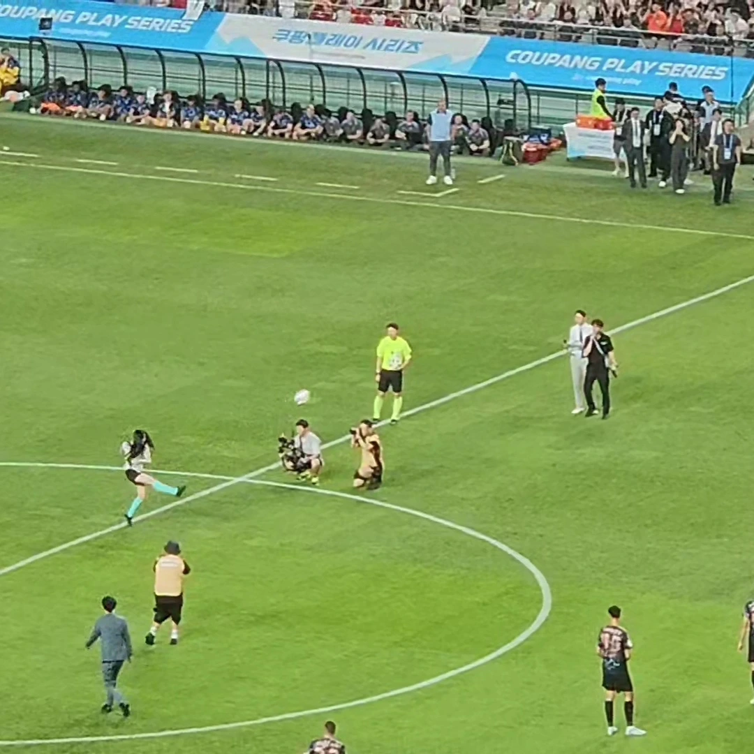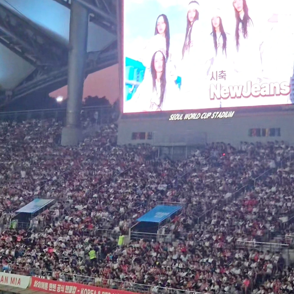 저도 가고 싶다는 생각이 막힌 도로 위의 차들을 보며 스멀스멀 올라옵니다. 뉴진스 시축사진도 올라왔는데 이게 엄청난 화제가 되었대요. 다른 멤버는 그냥저냥 살짝 공을 찼는데 민지 님이 때린 공은 우주로 나가는 줄 알았대요. 저 사진에도 보면 민지 님의 자세가 강슛을 때리는 것 같죠? 선수분들도 깜짝 놀랄 정도의 풀파워 슛이었다고 합니다.