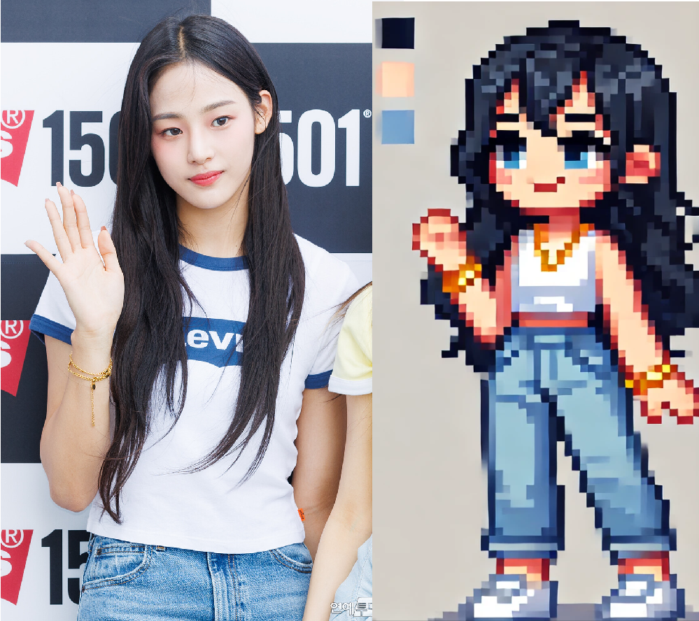 < 뉴진스 민지님과 생성형 AI 달리-3로 만든 민지의 도트 캐릭터 >