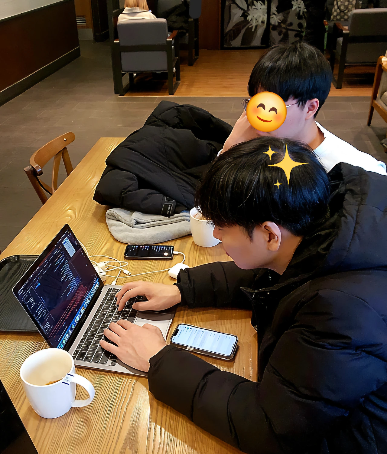 < 스벅에서 코딩하는 챗빌리지팀. 물론 저는 커피값을 제공했죠 >