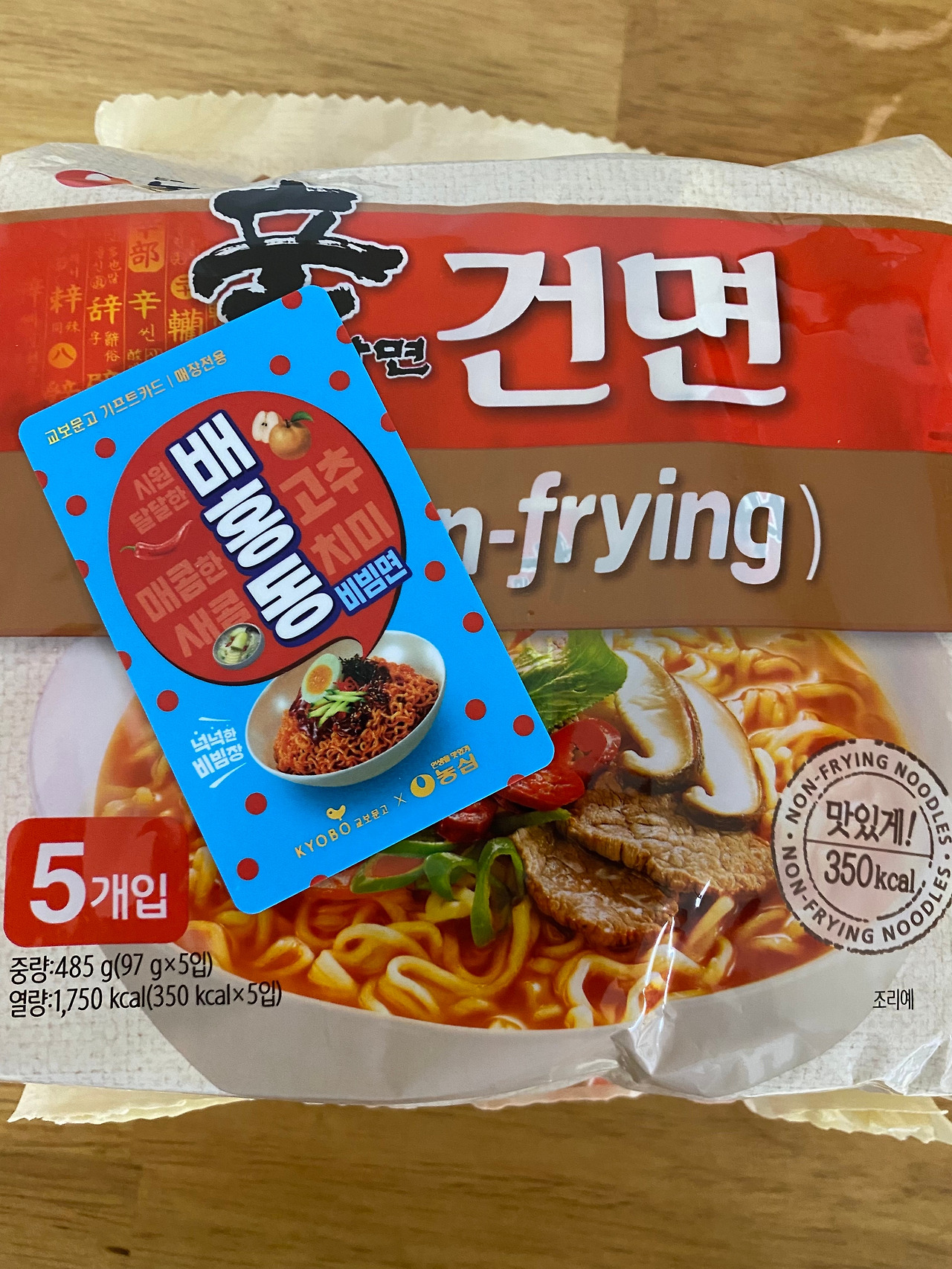 기프트 카드와 할인 혜택 외에도 구매 금액에 따라 스티커와 책갈피 같은 사은품도 준다고 한다. 책을 많이 사서 그런 것인지 나는 <신라면 건면>을 무려 다섯 봉이나 받았다.