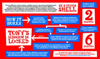 Tony’s Mission Lock을 통하여 모든 이해관계자들은 안전하고 투명하게 접근할 수 있는 권리를 부여받으며, 매년 연례 FAIR보고서를 통해 우려사항에 대해 공개할 권리와 신문에 게시할 권리를 가지며, 네덜란드 기업 상공회의소에서 법적 조사 및 중재를 위해 해당 문제를 회부할 권리를 지니고 있습니다.