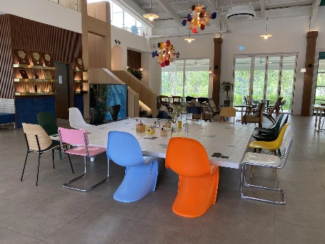민트 컬러의 의자가 기분을 좋게 만들었고