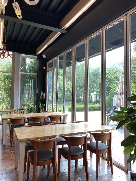 카페는 계절이 잘 보이는 통창으로 되어 있어서