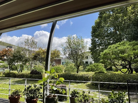 마주 앉은 초록 너머로 파란 하늘과 구름이 그림처럼 펼쳐졌다.