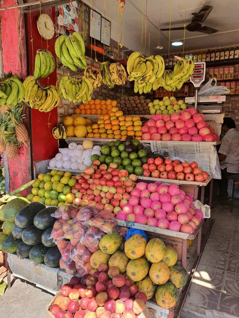 고맙게도 카트만두에서는 제철 산물을 구분하는데 인터넷의 힘을 빌리지 않아도 된다. 한 손가락 안에 꼽히는 대형마트를 제외하고는 모두 제철에 나는 품목만을 취급하기 때문이다. 이유는 아주 간단하게 냉장시설이 보편화 되지 않았기 때문이다. 대부분의 과일들은 감자나 양파처럼 매 대에 오른 상태로 판매가 된다. 바나나, 파인애플은 천장 또는 가게 옆모서리에 매달려 있다. 우리나라 편의점처럼 시내 곳곳에 포진한 과일 가게에는 대부분 착즙기를 비치하고 매 대에 있는 과일을 즉석에게 주스로 만들어서 판다. 오렌지, 석류 등 100% 생과일주스를 즉석에서 마실 수 있다. 냉장시설도 없는 곳에 냉동시설이 있을 리 만무하여 미지근한 상온의 주스이긴 할지나 영양가는 더 높지 않을까 싶다. 재미있는 것은 신선식품으로 과일과 야채를 동시에 파는 우리네 풍경과는 달리 이곳은 과일가게와 야채가게가 명확하게 구분되어 있다는 사실이다.
