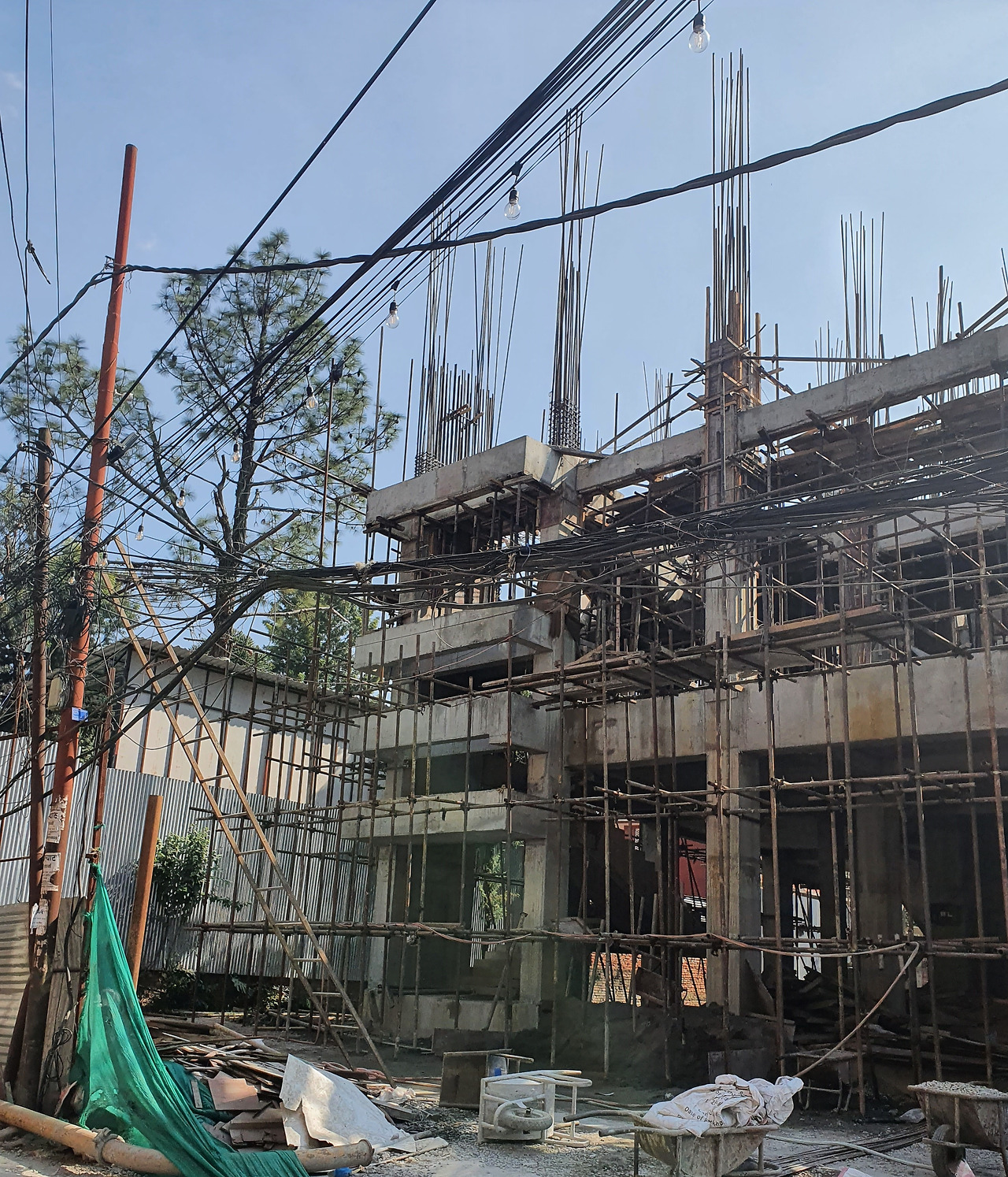 그런데 이들이 공사하는 것을 가만히 살펴보면 신기한 것이 있다. 보통 우리네 공사현장에는 사람도 있지만 기계들이 더 많다. 이곳은 사람과 철근, 시멘트 같은 재료만 많다. 기계는 보이지가 않는다. 드라이버가 아닌 망치로 두드리고 사람이 등에 지고 옮기고 있다. 호모 하빌리언가 기초적인 도구만으로 인류 문명을 이룩했던 모습을 목격하는 듯하다. 추후 누군가의 전언에 의하면 기계를 당연히 사용하고 있으나 빈도수가 낮고 저렴한 비용을 위하여 주로 밤에 사용하다고 한다.