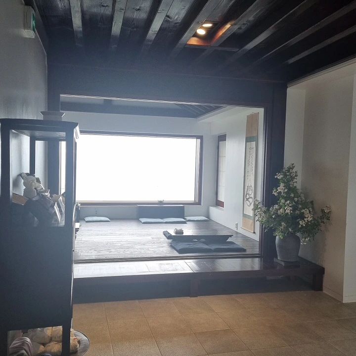 들어서면 전통 가옥의 툇마루와 창호지 문으로