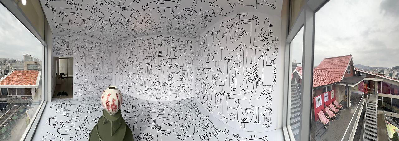 입구 포토존이다. 낙서처럼 쓱쓱 그린 모습이 작가만의 개성을 제대로 보여준다.