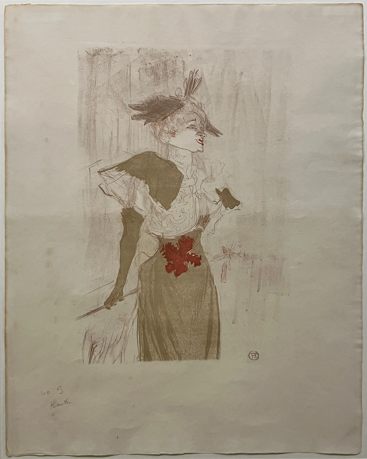 1880년대 중반 로트렉은 스승의 울타리와 이젤 페인팅에서 벗어나 몽마르트에 정착하고 작업실을 마련하여 카바레 유명 인사와 파리의 보헤미안들을 자유롭게 그렸다. 그는 첫 번째 석판화 포스터 작품 (물랑루즈: 라 굴뤼>(1891)로 큰 반향을 일으켰으며, 그 후 아리스티드 브뤼앙, 제인 아브릴, 이베트 길베르, 로이 풀러에 이르기까지 수많은 스타들의 개성을 간결하게 표현한 독창적인 화풍으로 큰 인기를 얻었다.
