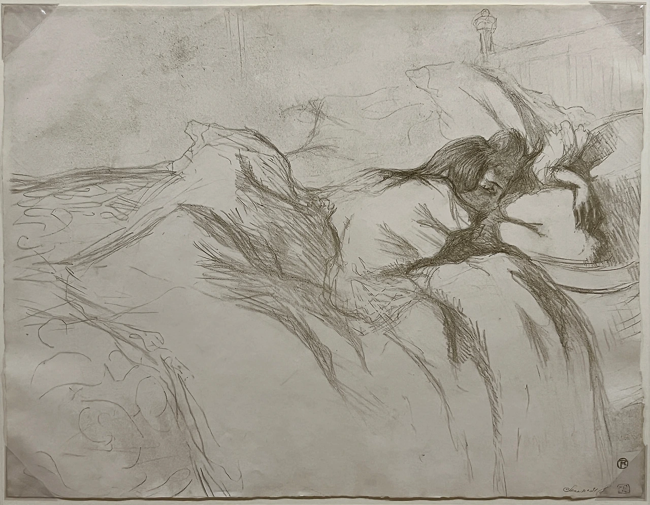 에로틱한 장면 속 매춘부가 아닌 일상의 평범한 순간을 영위하는 한 여인으로서 그들을 묘사한 로트렉은 신분과 계급의 굴레를 벗어난 온전한 인간다움을 화폭에 담았다.