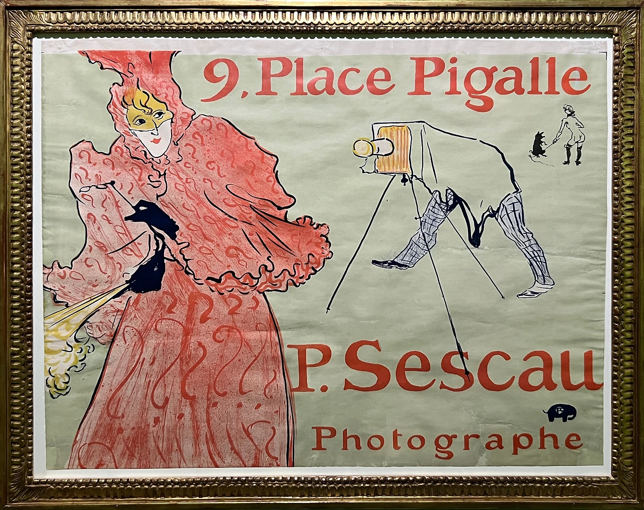 (사진가 폴 세스코)는 로트렉의 친구이자 사진작가였던 폴 세스코가 자신의 스튜디오에서 모델을 촬영하는 모습을 표현한 작품이다. 친구들 사이에서 세스코는 여성을 밝히는 사람으로 평판이 나 있었는데, 보통 사진 촬영을 목적으로 여성 모델들을 자신의 스튜디오로 부른 다음 성적으로 유혹하곤 했다. 로트렉은 그러한 세스코의 면모를 은유적으로 담아냈다. 가면을 쓰고 붉은색의 화려한 드레스를 입은 모델은 그의 음흉한 시선을 피해 카메라로부터 등을 돌리고 있다. 로트렉은 그녀의 모자와 하반신을 의도적으로 잘라내는 방식으로 화면 바깥에 튀어나올 듯하게 묘사함으로써 서둘러 벗어나고자 하는 모습을 강조하였다.