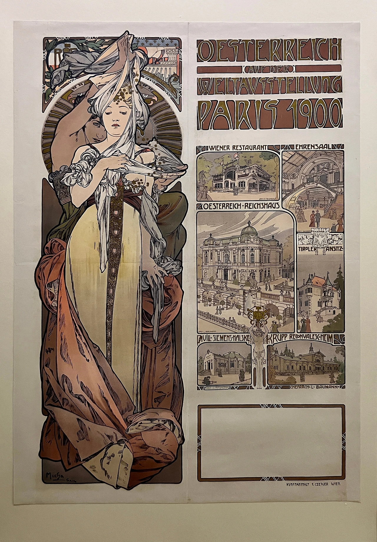살롱 데 상에서 대규모의 전시회를 열면서 파리 예술계 내 화제의 인물이 되었던 알폰스 무하는 1900년 파리 만국 박람회의 광고 포스터와 오스트리아-헝가리 파빌리온 디자인 의뢰를 받았다. 본 작품은 오스트리아-헝가리 제국이 자국을 홍보하기 위해 무하에게 의뢰했던 박람회 포스터이다. 뒤에 있는 신비로운 인물에 의해 베일이 벗겨지고 있는 젊은 여인은 제국을 의인화한 것으로, 그녀의 의상에는 제국의 문장이 새겨져 있다. 오른편의 건물을 그린 삽화는 주요 오스트리아 관광지를 보여주며, 그 아래의 빈칸은 박람회 관객들을 위한 파리행 철도 안내 문구를 삽입하기 위해 비워둔 것이다.