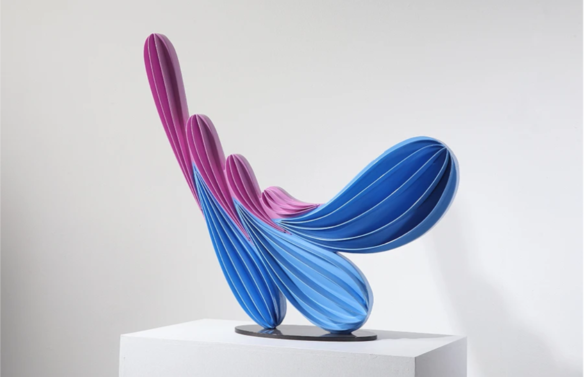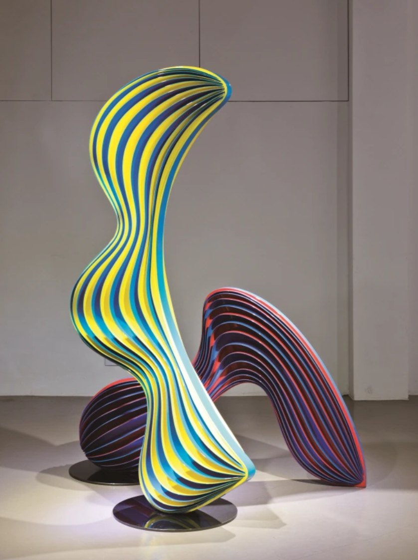 ECO FLOW에 대한 나의 조형연구는 그 동안 작품주제로 표현해왔던 생명의 소리' 로부터 진화된 내용임과 동시에 표현방법입니다. 공간을 공유하 고 있는 입체로 유연한 선과 유동적인 부피감을 가진 다양한 색상들로 이루어진 미의 세계입니다.