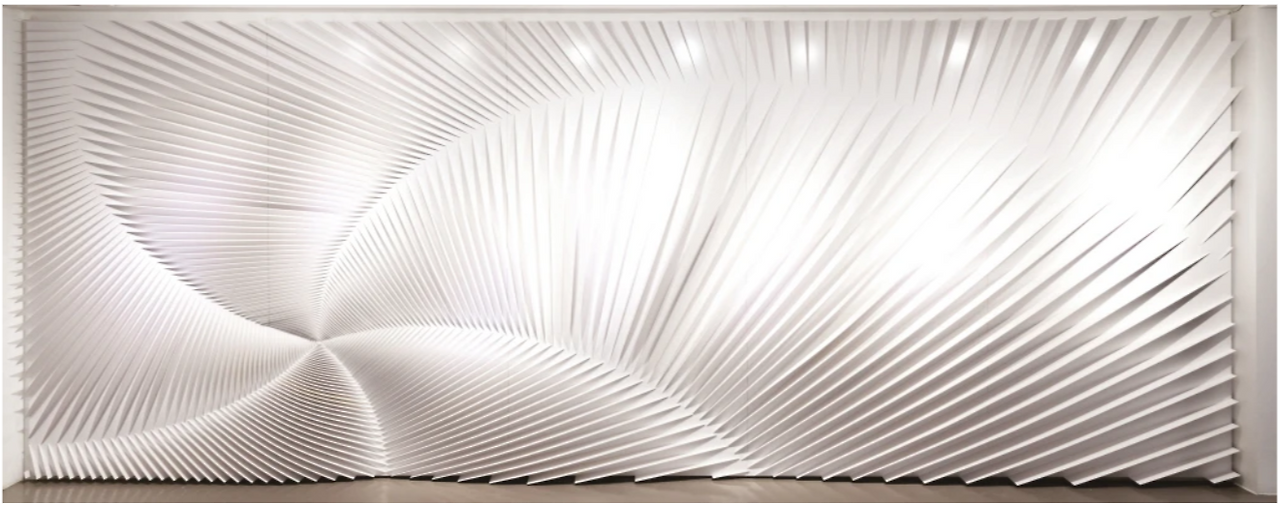 작업은 눈에 보이지 않는 현상, 즉, 거대한 우주의 섭리에서 우리네 삶의 여정을 통해 체험하고 체득하는 깨달음의 과정인 동시에 공존하는 모든 개 체들 속에 있는 삼라만상의 조화를 표현하는 과정입니다. 이는 무한한 우주공간과 맞물려있는 생명감과 대자연의 조화로운 질서를 나타내는 미학 적 결실로도 이어집니다. 판재의 물성을 이용한 이래 작품은 일정한 면으로 절단하거나 휘어 만든 연속적인 곡선으로 이루어져 평면과 곡면 위에서 유기적인 형태로 조화로운 리듬감을 보이며 또한 형태 안에서 열린 공간을 공유한 조형언어를 지향합니다. 시점에 따른 다양한 형태, 전체를 이루는 부분들의 전이, 색에 따른 볼륨의 조화, 무한대로 흐르는 리드미컬은 혼돈의 시대를 살고 있는 우리 내면으로부터 오는 순수영혼에 대한 갈망을 동 력으로 삼고 있습니다.