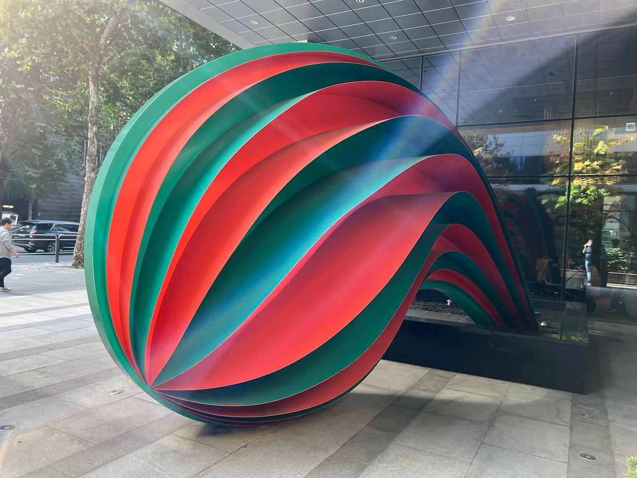 생동감 넘치는 조형물입니다. Eco Flow는 생태의 풍부한 흐름을 뜻하는데 부제로 'Spring's Smile'이라고 된것 보니 작가는 봄의 웃음이라는 감정을 땅에서 솟구치는 덩어리로 표현한듯 합니다.