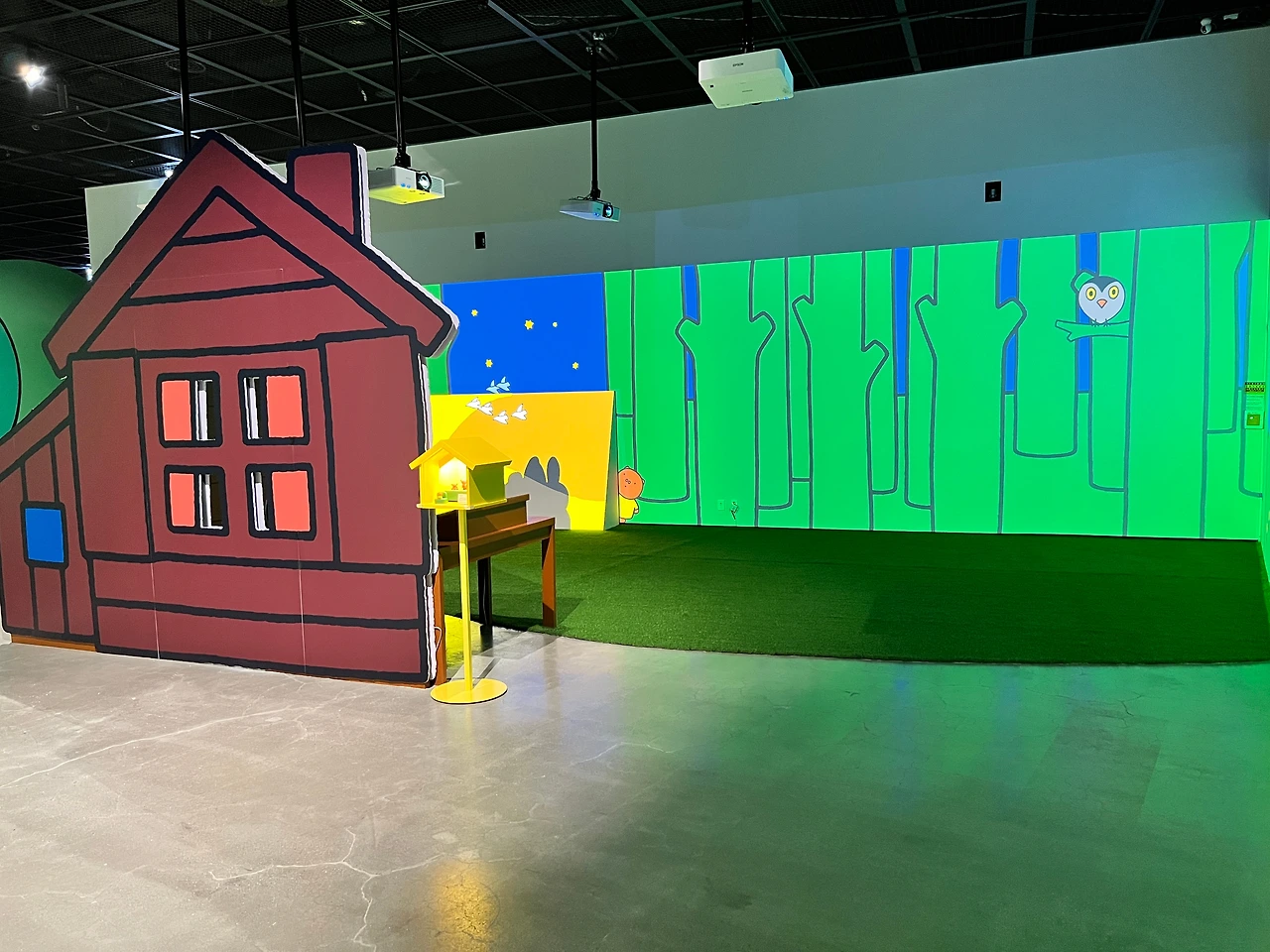 단조로울 수 있는 미피 이미지를 적절히 프로젝터를 사용해서 다이내믹한 느낌을 줍니다.