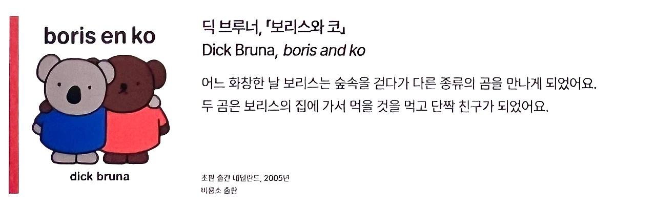 이번 전시에서는 작가 딕 브루너의 원화와 함께 또 다른 작품인 <블랙베어>가 전시됩니다. 선 너머를 상상하게 하는 작품들 속에서 딕 브루너의 작품 철학인 Lessis more'를 발견해 보세요.