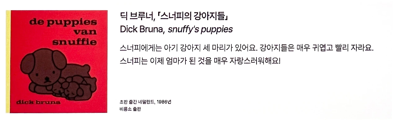 1959년부터 딕 브루너는 오른쪽에 삽화, 왼쪽에 네 줄의 텍스트가 있는 정사각형 형태로 책을 만들기 시작했다. 아이들이 쉽게 잡을 수 있도록 16x16cm 크기로 만든 이 '스퀘어 북'은 70년이 지난 지금도 그대로 유지되고 있다.