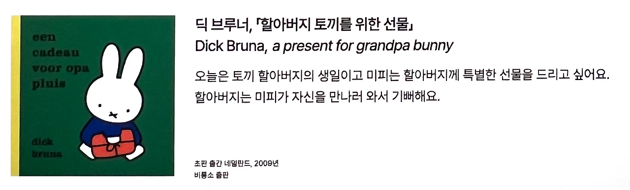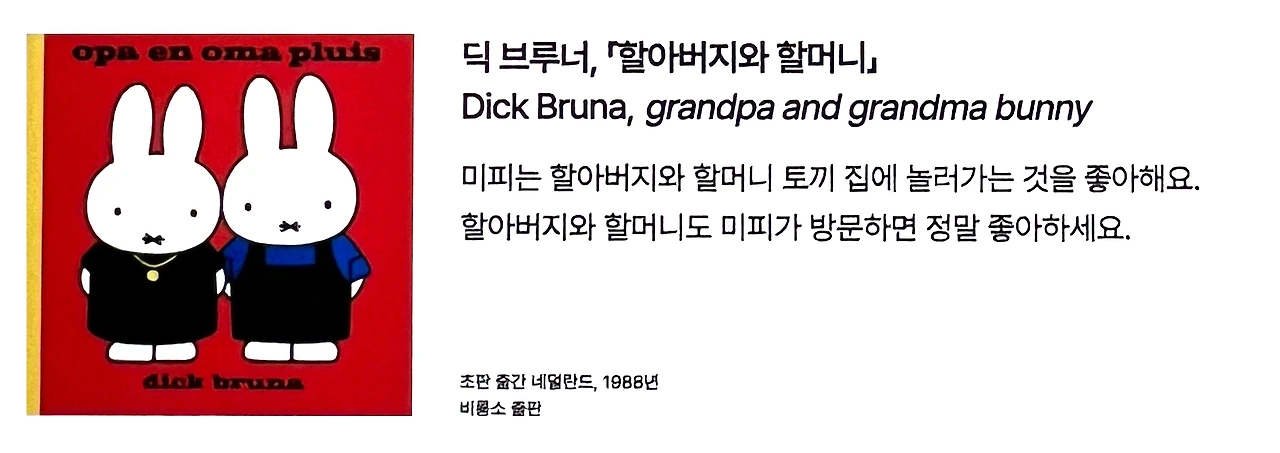 이제는 고인이(2017.2.17) 되신 전 세계 어린이들에게 친근한 토끼 캐릭터 '미피'를 만든 네덜란드 아동작가 딕 부르너(Dick Bruna)