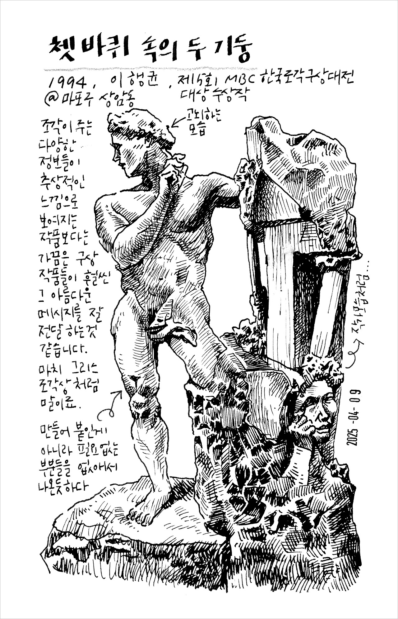 #마포 #상암MBC #이행균 #1994 #한국조각구상대전 #쳇바퀴속의두기둥 #길러리 #조각 #조각작품 #공공미술 #길거리갤러리