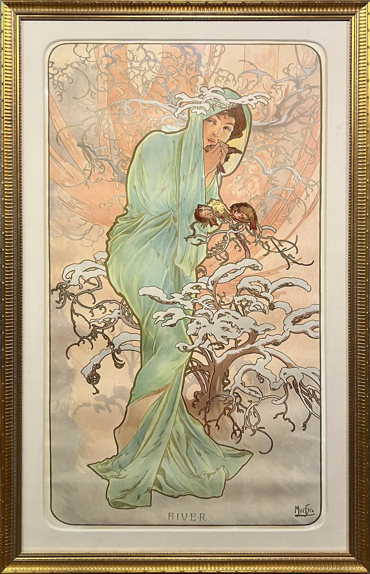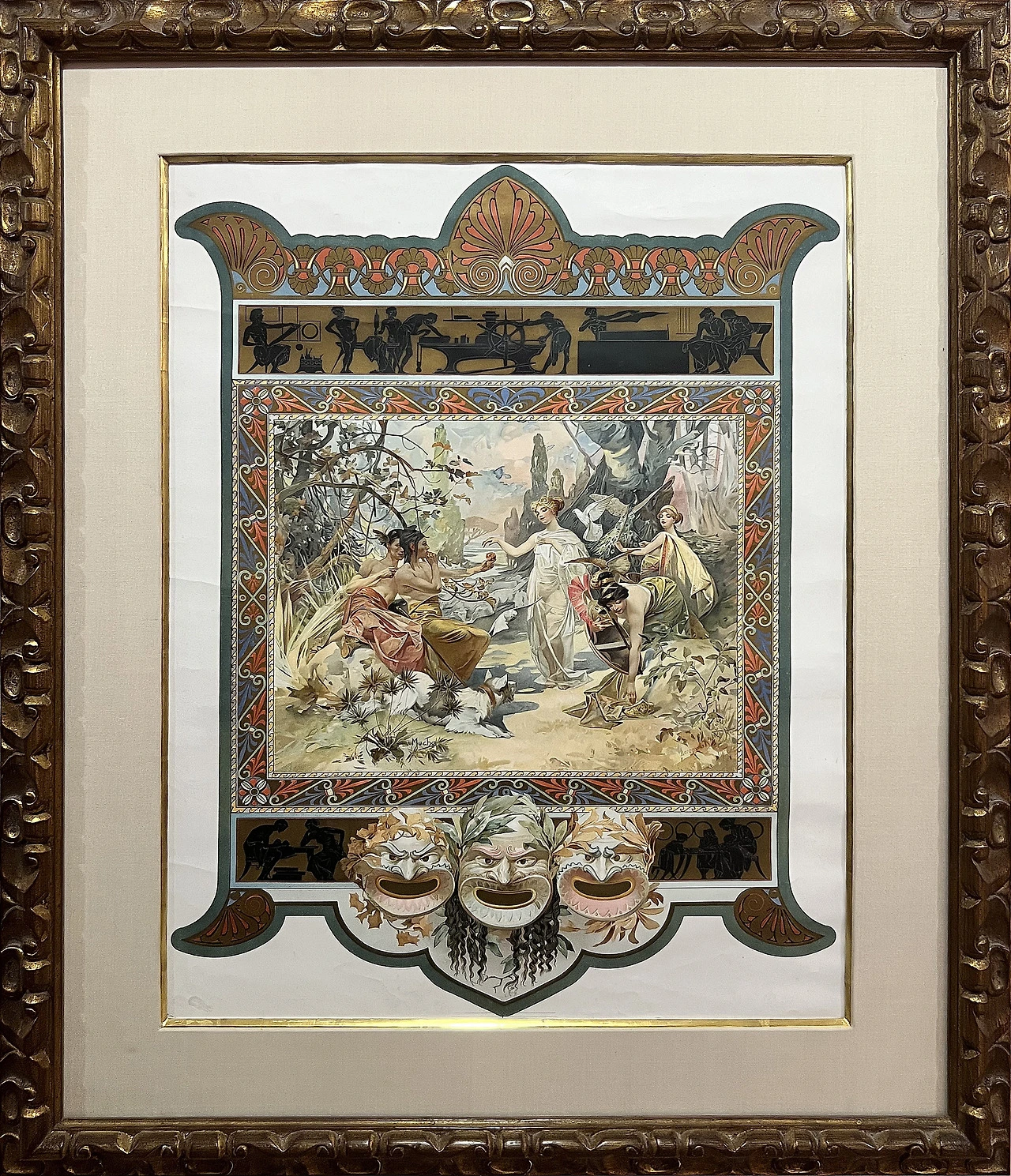 무하는 이 포스터로 유명해지며 상업 석판 인쇄 업 계에 새로운 화풍을 퍼뜨렸다. 1894년의 크리스마스 날, 인쇄소에서 작업할 화가를 구할 수 없었던 사라 베르나르의 극단이 무하에게 급하게 요청해서 탄생한 포스터다. 이 연극의 3막에는 성지주일 행 렬 장면이 나오는데, 무하는 이때 화려한 의상과 커 다란 잎사귀를 들고 있는 배우를 매우 섬세하게 표현했다.