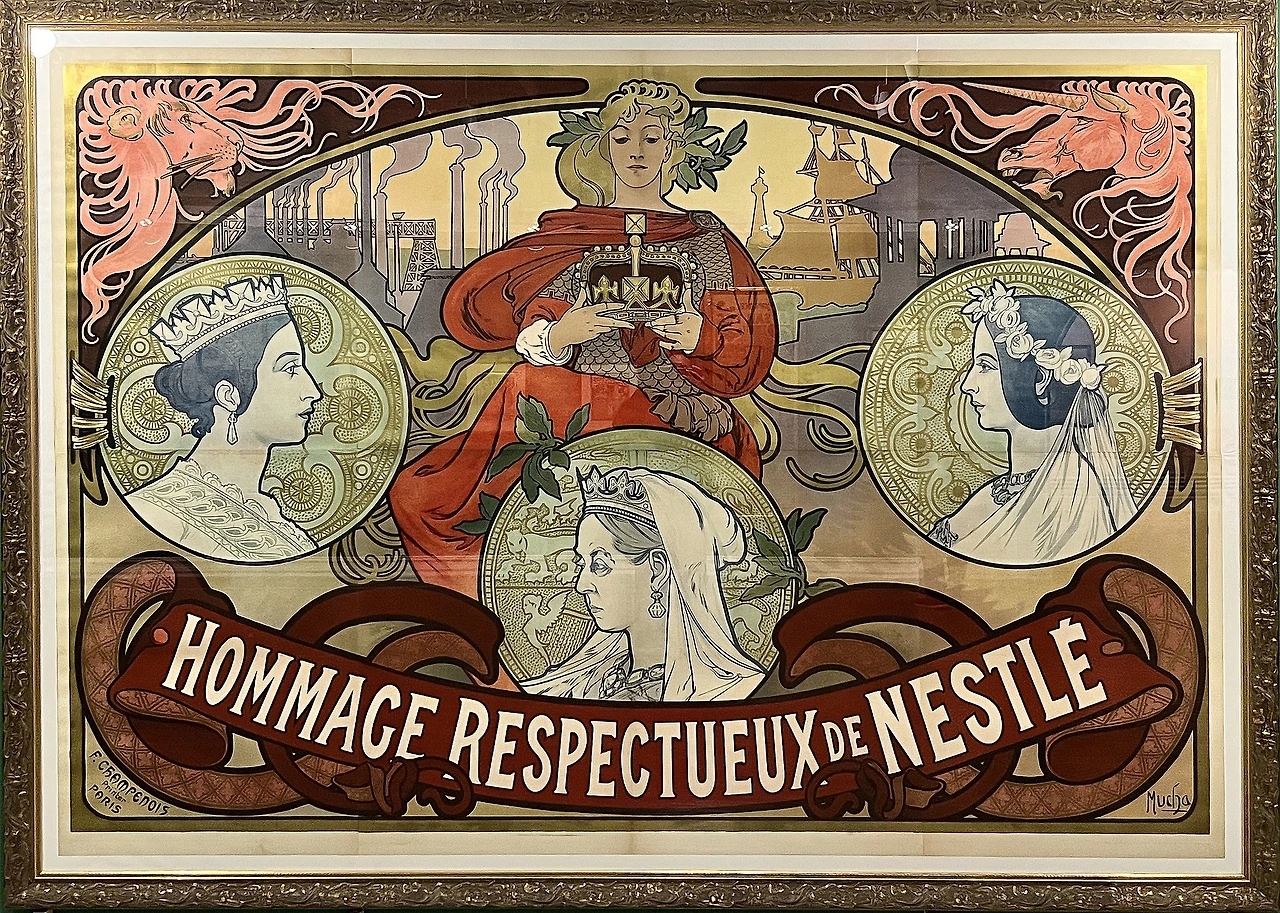 19세기말 유럽은 산업화와 도시화로 인해 대중 소비문화가 빠르게 성장하던 시기였다. 철도망 확장과 백화점의 등장은 소비를 필요 충족에서 문화적 경험으로 변화시켰다. 기업들은 제품을 보다 효과적으로 홍보하기 위해 시각적 요소를 강조하기 시작했다.