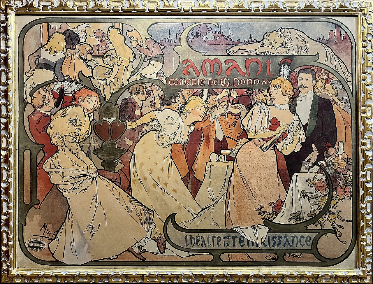 무하가 그린 르네상스 극장의 두 번째 포스터는 사라 베르나르는 없지만 루시 앙 기트리와 잔 그라니에가 출연한 연극을 홍보했다. 포스터의 장식 테두리가 장면을 세 구역으로 나누고 있다. 연극은 1895년 11월 5일에