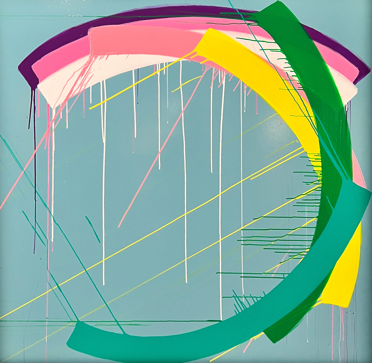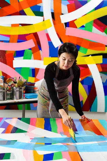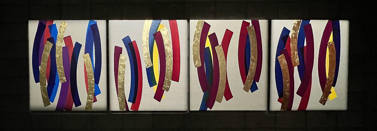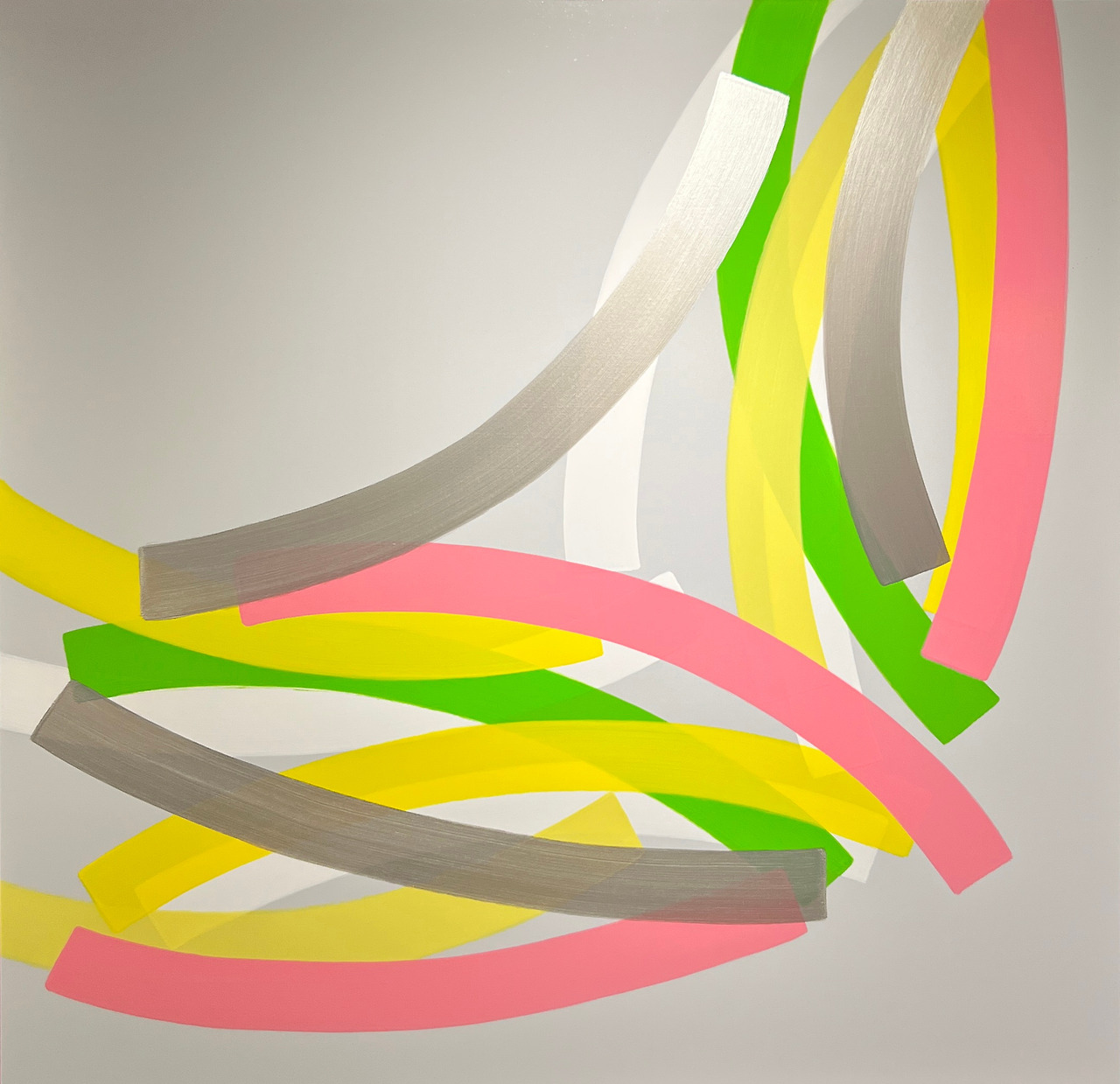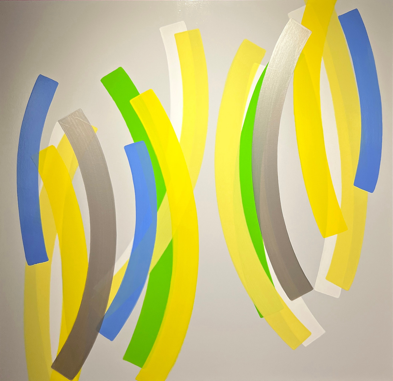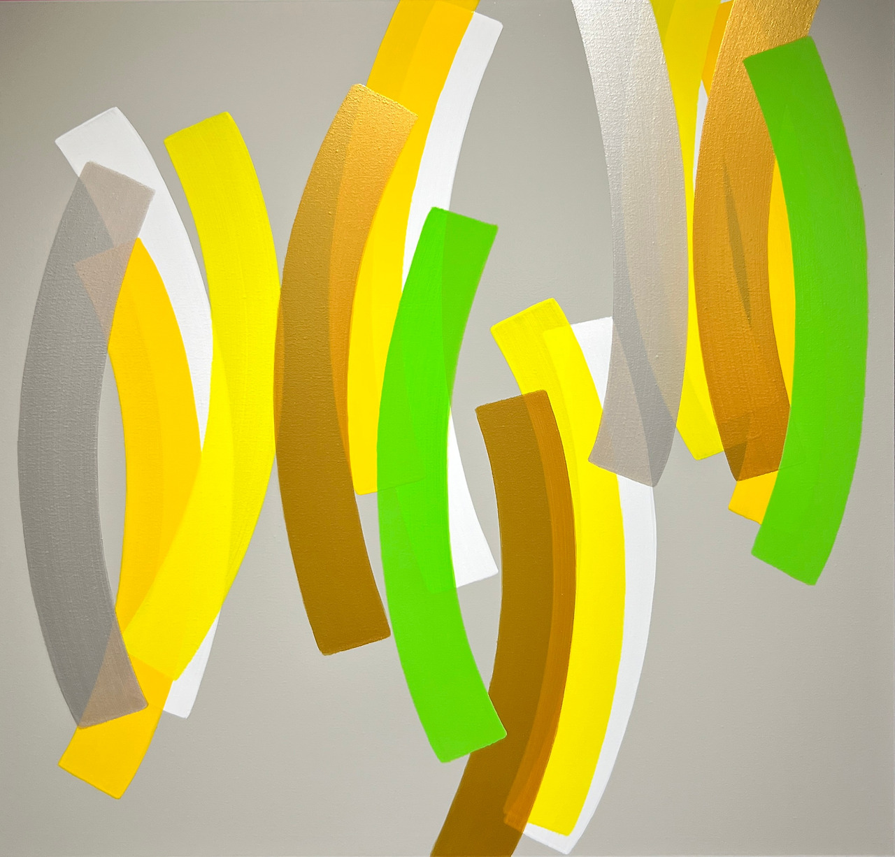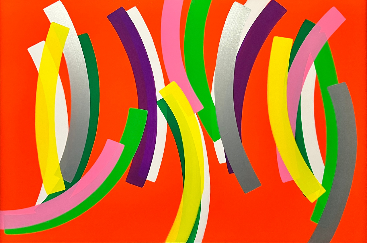 반곡면의 색띠는 단순한 형태 같지만 무한한 가능성을 품고 있으며, 일정한 리듬과 역동성을 통해 강렬한 시각적 잔상을 남깁니다. 교차하고 반복되는 색띠는 시간의 중첩을 상징하며, 경쾌하고 리드미컬한 색의 배치는 관람객에게 긍정의 에너지를 선사한디고 합니다.