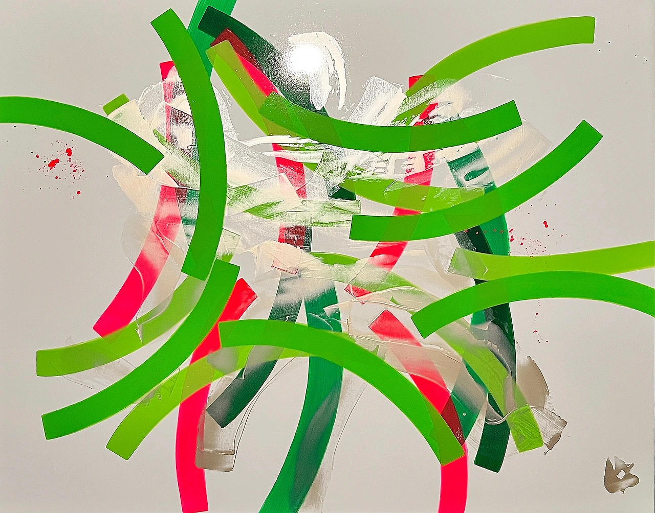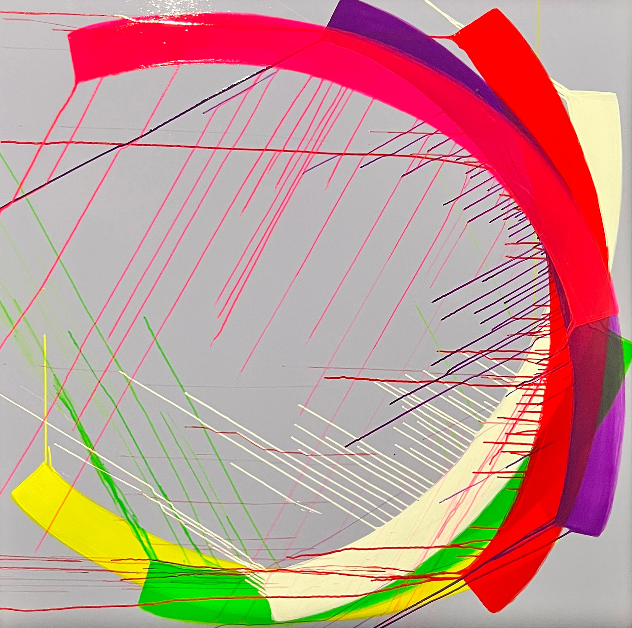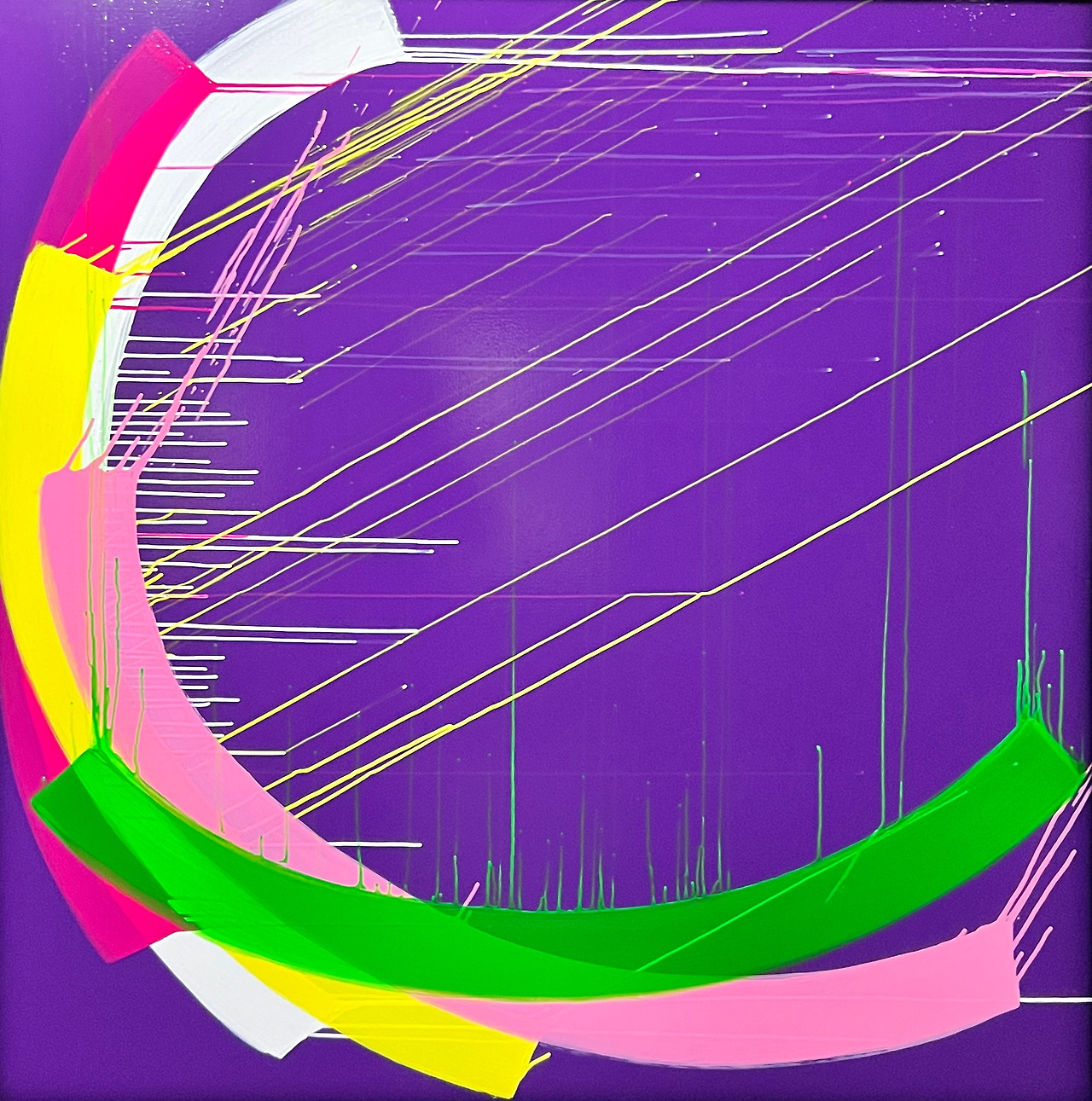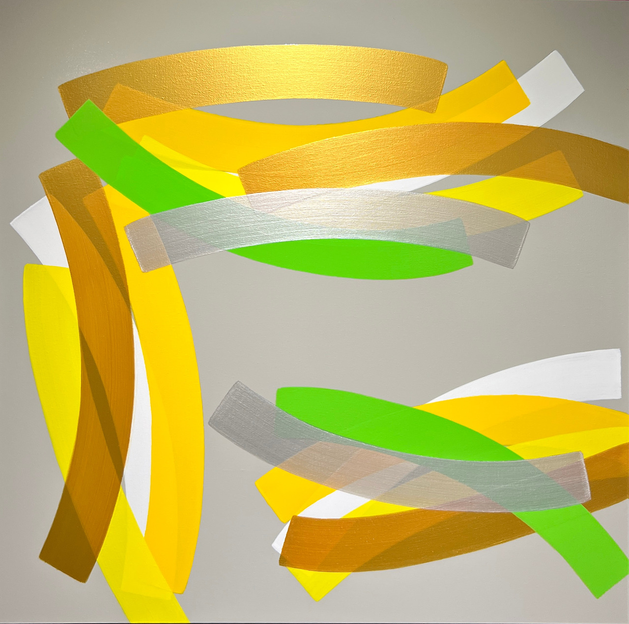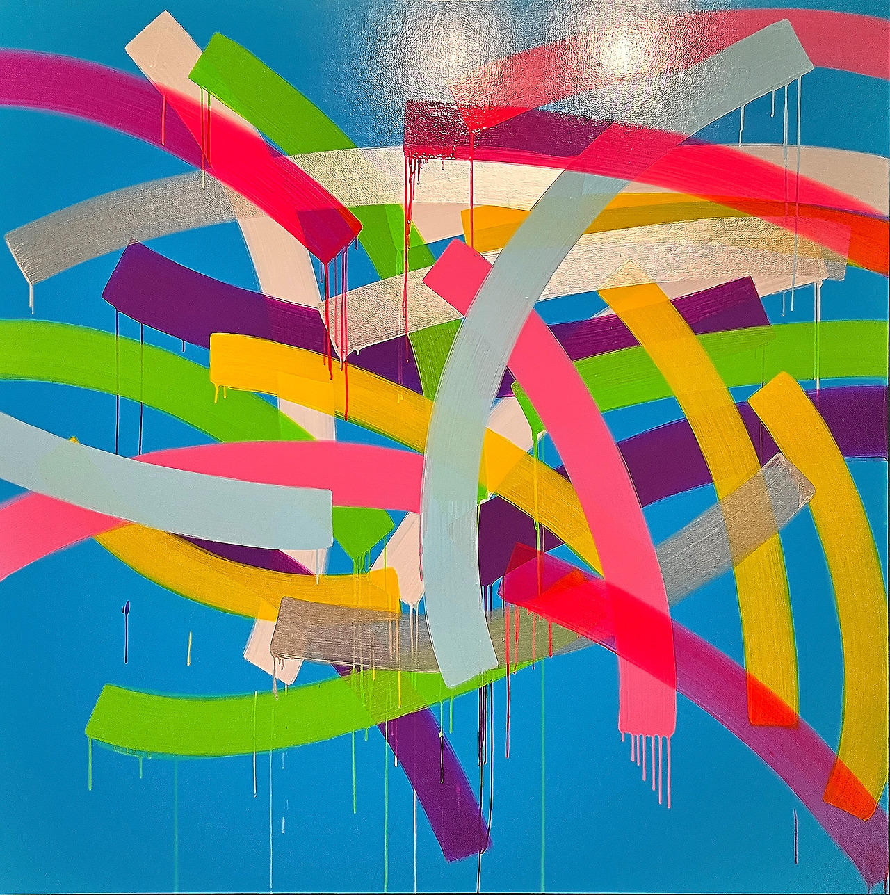 반곡면의 색띠는 단순한 형태 같지만 무한한 가능성을 품고 있으며, 일정한 리듬과 역동성을 통해 강렬한 시각적 잔상을 남깁니다. 교차하고 반복되는 색띠는 시간의 중첩을 상징하며, 경쾌하고 리드미컬한 색의 배치는 관람객에게 긍정의 에너지를 선사한디고 합니다.